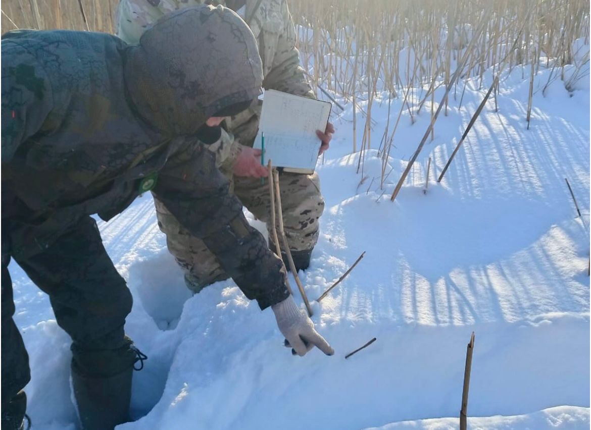 В период 13-14 февраля 2026 года на участке заповедника дельта р. Тентек: был проведен зимний маршрутный учет млекопитающих и учет на мониторинговой площадке 870 га. Учет проводился сотрудниками заповедника: териолог Мосин И.А., тех. помощь в учетах оказывали Филимонов А.Н. Максутов Асет и Максутов Айдын. Работы проводились на снегоходе «Вектор». Всего в ходе учетных работ, после экстраполяции, были учтены 141 особей сибирской косули, 4 особи волка, 149 особей кабана, 80 особей лисицы, 112 особей горностая, 37 особей степного хоря, 30 особи зайца песчаника и 17 особей шакала.