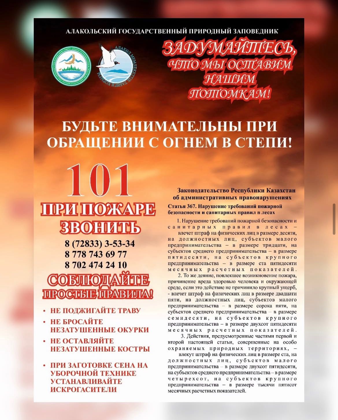 Он не просто сжигает траву - он уничтожает всё живое на своём пути. Гибнут животные, исчезают растения, земля теряет силу, а воздух становится опасным для дыхания. Одна неосторожность может стоить целой экосистемы. Береги природу сегодня - чтобы было завтра!